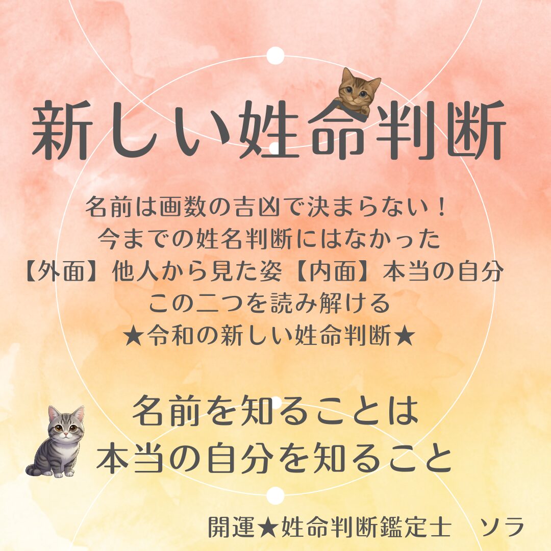 画数の吉凶だけでは分からなかった外面と内面のズレ、バランス、強み、伸ばし方まで読み解けるので、鑑定を受けると、今までの姓命判断の概念がガラッと変わります。