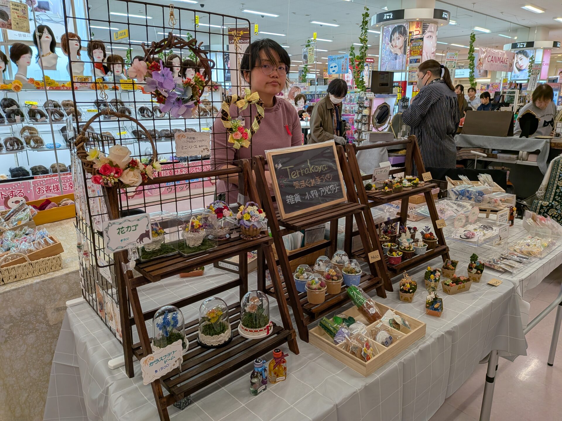 - ミニハーバリウム、ミニ花籠アレンジメントやレジンで作った雑貨や、その他アクセサリー等、手作り雑貨等を販売しています